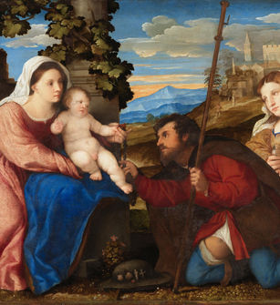 Hundert Jahre später erwarb Kaiser Rudolf II. das Bild nach langwierigen Verhandlungen mit der Kirchengemeinde San Bartolomeo und der Familie Fugger. Diese Familie, die die Blüte und den Wohlstand Augsburgs maßgeblich gefördert hatte, gehörte auch in Venedig zu den wichtigsten Protagonisten der deutschen Händlerschaft. Bis heute erzählt in Augsburg die prachtvolle Begräbniskapelle an der Sankt Annenkirche von ihrem Ansehen und Selbstbewusstsein, genauso wie von ihrem Kunstverstand. Die Fuggerkapelle gilt als erster Bau nördlich der Alpen, der italienische Renaissance Elemente aufgreift. Der lichte Raum mit den offenen Arkaden, den bogenförmigen Wandfeldern und schmückenden Putten ist nach venezianischem Vorbild gestaltet, während das sternförmige Rippengewölbe der Decke die nördliche Spätgotik repräsentiert. Die malerische Ausstattung war ebenfalls vom mittelalterlichen Erbe geprägt, wie die vier im Städel gezeigten Flügelgemälde des Jörg Breu bezeugen, die Jacob Fugger für die kleine Orgel der Kapelle hatte anfertigen lassen.