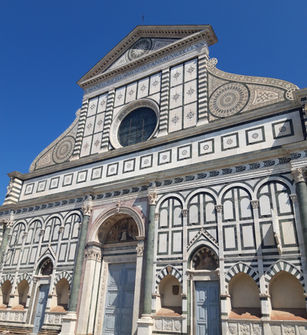 Nach einem kleinen Spaziergang in flirrender Hitze erreichen wir das Findelhaus, das Filippo Brunelleschi zu Beginn des 15. Jahrhunderts zart, elegant und anmutig auf diesen Platz gestellt hat. Elternlose oder ungewollte Kinder konnten hier diskret in Fürsorge gegeben werden. Leise, streng und bezaubernd gibt dieses Haus als erster Bau der Frührenaissance bereits eine Ahnung von der architektonischen Schönheit, die in der kommenden Zeit noch entstehen wird.